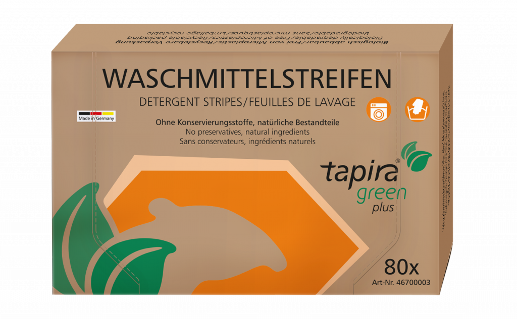 46700001 Die ersten in Deutschland produzierten und somit nachhaltigen Waschmittelstreifen für Großverbraucher. Pro Waschgang werden ca. 93% weniger Ressourcen verbraucht. Aufgrund der kurzen Lieferwege können ca. 96% der CO2-Emmision eingespart werden. Zudem sind die Waschmittelstreifen biologisch abbaubar, frei von Mikroplastik, Parabenen, Phosphaten, Aufhellern, Bleichmitteln und Farbstoffen. Geeignet für weiße und bunte Wäsche sowie alle Temperaturen.